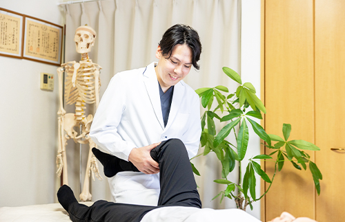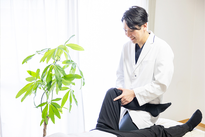 カウンセリングをもとに身体の状態チェックをしていきます。膝の痛みにも膝特有の評価方法があります。その評価方法を使い患者様の膝痛の原因をあぶり出します。