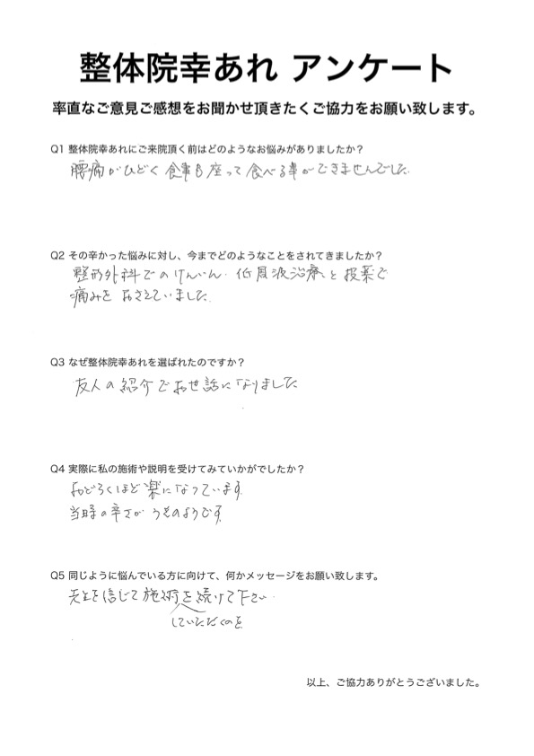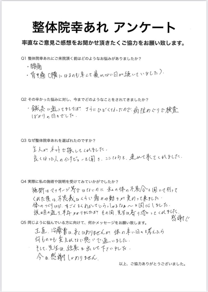 Q.なぜ整体院幸あれを選ばれたのですか?