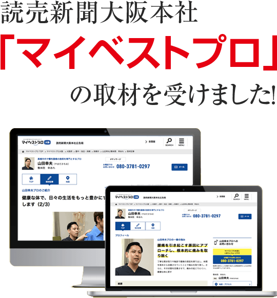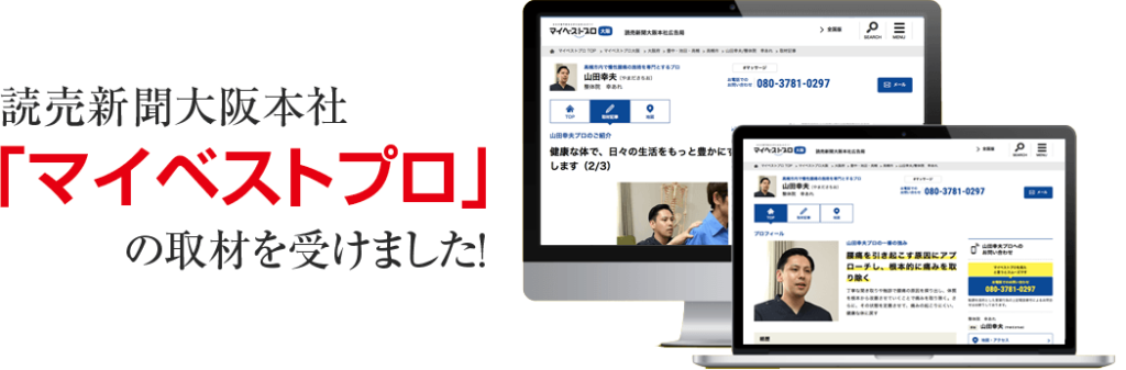 整体院幸あれ 院長 山田幸夫が、読売新聞大阪本社が提供する専門家ガイド「マイベストプロ」に腰痛を引き起こす原因にアプローチし、根本的に痛みを取り除くプロとして掲載されました!
