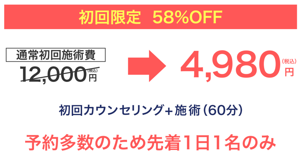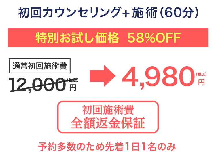 ここまで聞いてまだ不安なあなたへ初回の施術で効果を実感できなければ施術費を全額返金します。